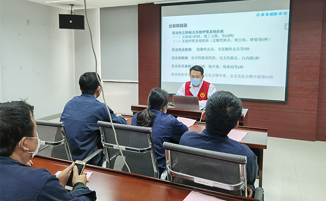 4月28日,公司为普及职业健康知识,邀请望直港镇卫生院医生针对现场班组人员开展职业健康宣传教育活动。